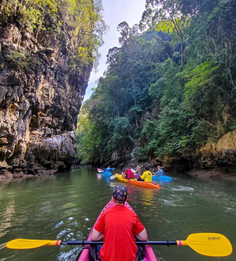 A kayaking trip through Ao Tha Lane’s mangrove forests is a perfect family escape. Paddling past towering limestone cliffs, winding waterways, and dense mangroves feels like discovering a hidden world full of adventure, wildlife, and a hint of mystery. As avid kayakers, this trip was one of our favourite days—and left us wishing we could have stayed out on the water longer.