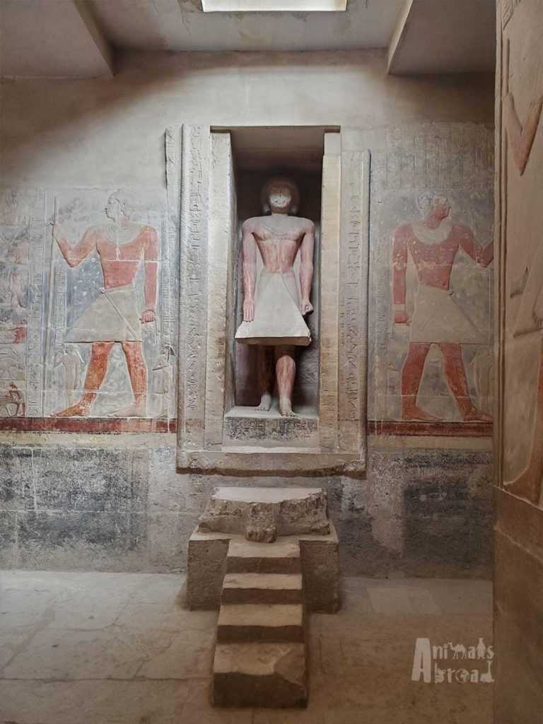 Beyond the famous Step Pyramid, Saqqara revealed even more treasures. We explored the pyramid of Teti, which looks unassuming from the outside but opens into a maze of chambers and passageways with intricately carved walls inside. Even more striking were the nearby tombs of Mereruka and Ptahhotep II—lavishly decorated with hieroglyphs, animal scenes, and intricate depictions of daily life. Though some of the original colour has faded over time, the precision and storytelling etched into the stone remain powerful. Walking through these tombs offered a surprisingly intimate glimpse into ancient Egyptian life and culture.