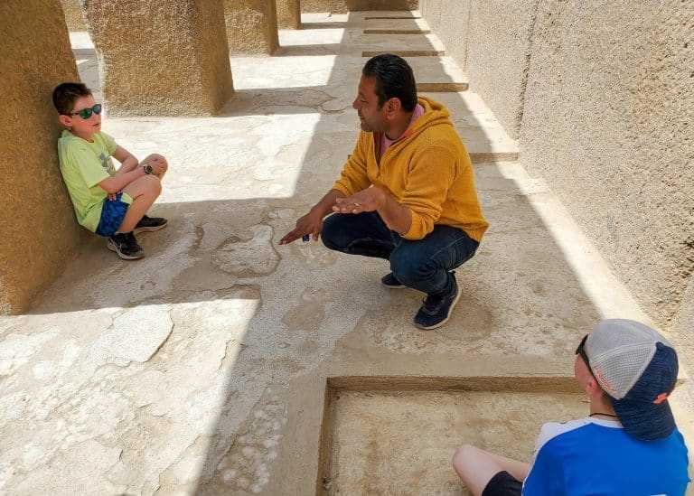 Nearby, the Valley Temple offers a glimpse into the rituals of mummification, burial, and the journey to the next life, and we were glad to have a guide there to explain the purpose and symbolism behind the process. It was fascinating, and the boys sat and listened in awe.