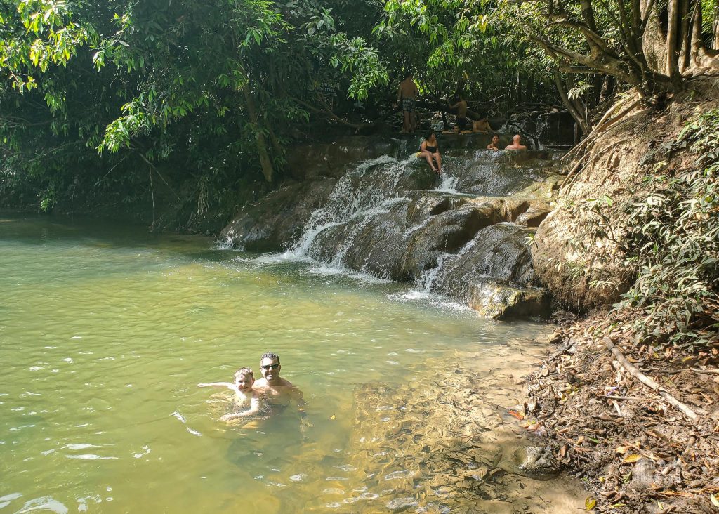 In contrast, we spent over three hours at the Emerald Pool. We took our time walking the jungle trails, explored all three pools, and then enjoyed a long, unhurried swim—about an hour and a half—without feeling rushed or crowded. At the Hot Springs, we were able to explore both natural and man-made pools, and the boys even had time to enjoy the nearby playground.