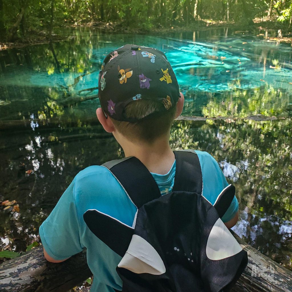 Footwear: The trails are easy and well-marked—runners or walking sandals work perfectly. The pool bottom is mostly sand, mixed with small pebbles, mineral silt, and the occasional rock or submerged log. The edges can be slippery due to mineral buildup. Our boys wore water shoes for extra grip, but bare feet are fine.