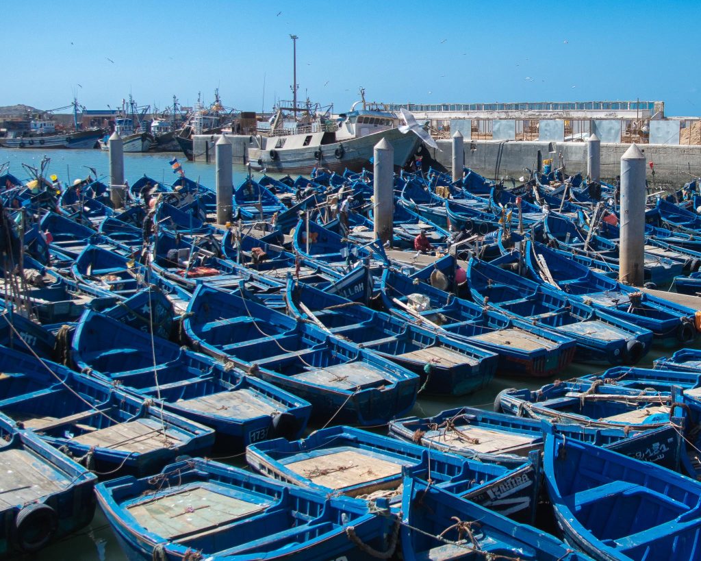 Essaouira’s working harbour is one of the city’s most iconic sights, best known for its rows of bright blue fishing boats. Each day, the boats return with the catch, which is sold right at the docks and often grilled nearby for lunch. Wandering slowly through the narrow lane offers a vivid glimpse into daily life in this seaside community.