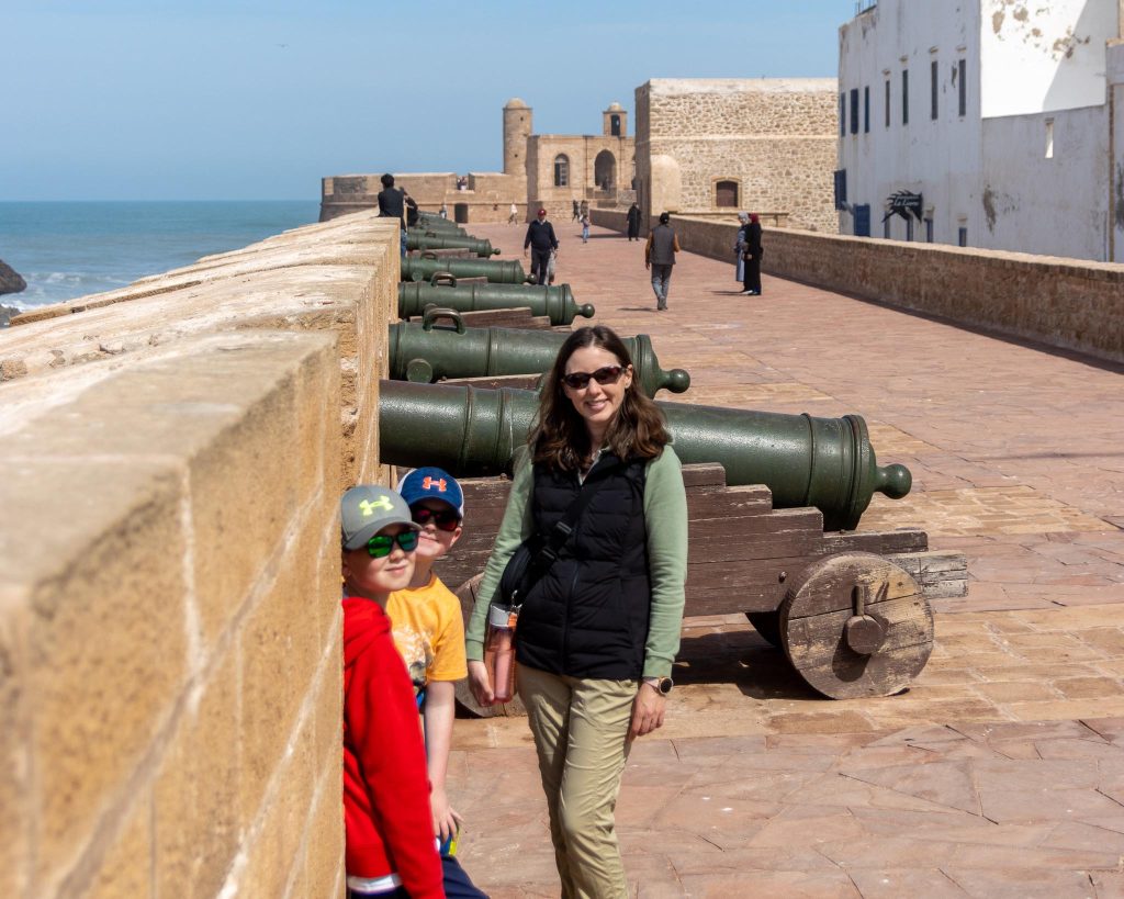 Essaouira is known for its relaxed coastal vibe and steady Atlantic winds. Often described as a quieter alternative to Morocco’s larger cities, this seaside town blends historic walls, a walkable medina, and long sandy beaches. After the intensity of Marrakech, Essaouira offered our family a welcome change of pace — slower, breezier, and manageable with kids.