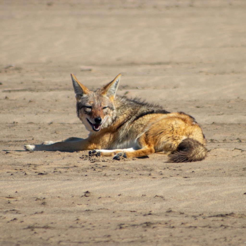 As we reached Pelican Point, we passed an aged black-and-white lighthouse and several jackals roaming the beach. The sun shone over crystal-clear, still water. Not a ripple in sight —perfect conditions for kayaking.