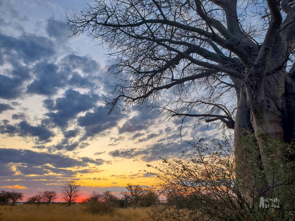 Our campsite, nestled beside two towering baobabs with views of shimmering salt flats in the distance, was as remote as it gets. No fences. No people. Just the rustle of dry grass and the whisper of wind through branches.
