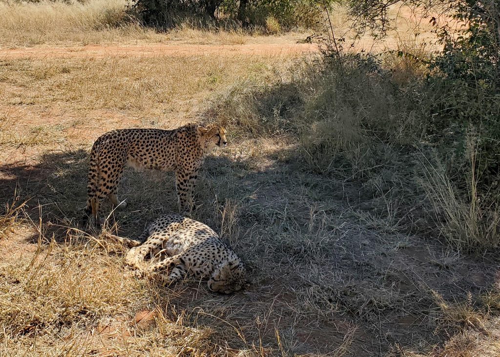 The boys were captivated by the interactive exhibits and medical center tour. Felix explained how some rescued animals become permanent ambassadors, while others are rehabilitated and released. We ended the visit with a drive through the enclosures, where we saw five cheetahs—four siblings rescued as cubs after their mother was killed.