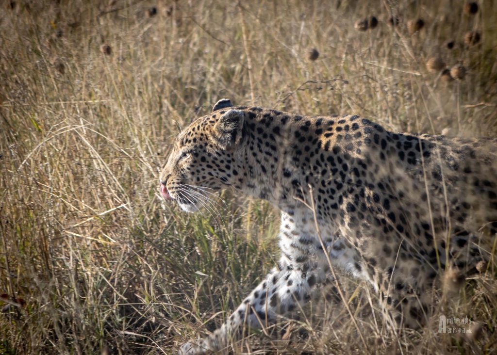 Not long after, a leopard crossed directly in front of our truck. We all gasped. A small female, elegant and unfazed, strolled casually into the tall grass. We followed slowly, snapping a few incredible photos before she vanished. It was surreal— We could not believe our good fortune.