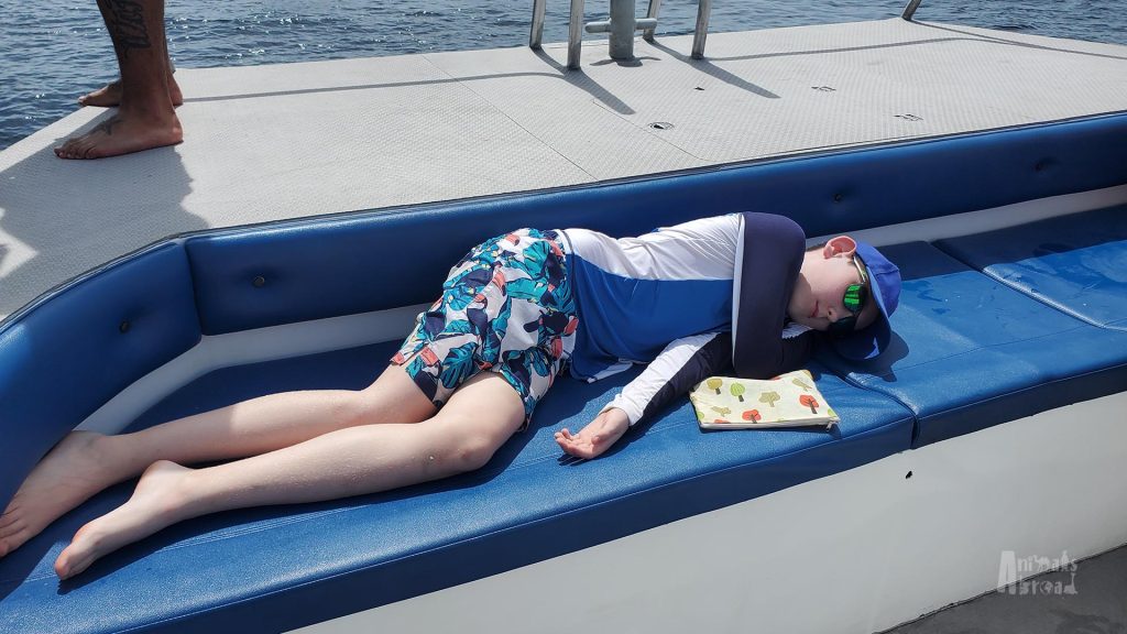 Sun Protection: We learned this one the hard way. Between the cool water and breeze on the boat, it’s easy to forget how strong the sun is—and we ended the day with sunburns to prove it. Wear rash guards, reapply sunscreen frequently, and take breaks in the shade.