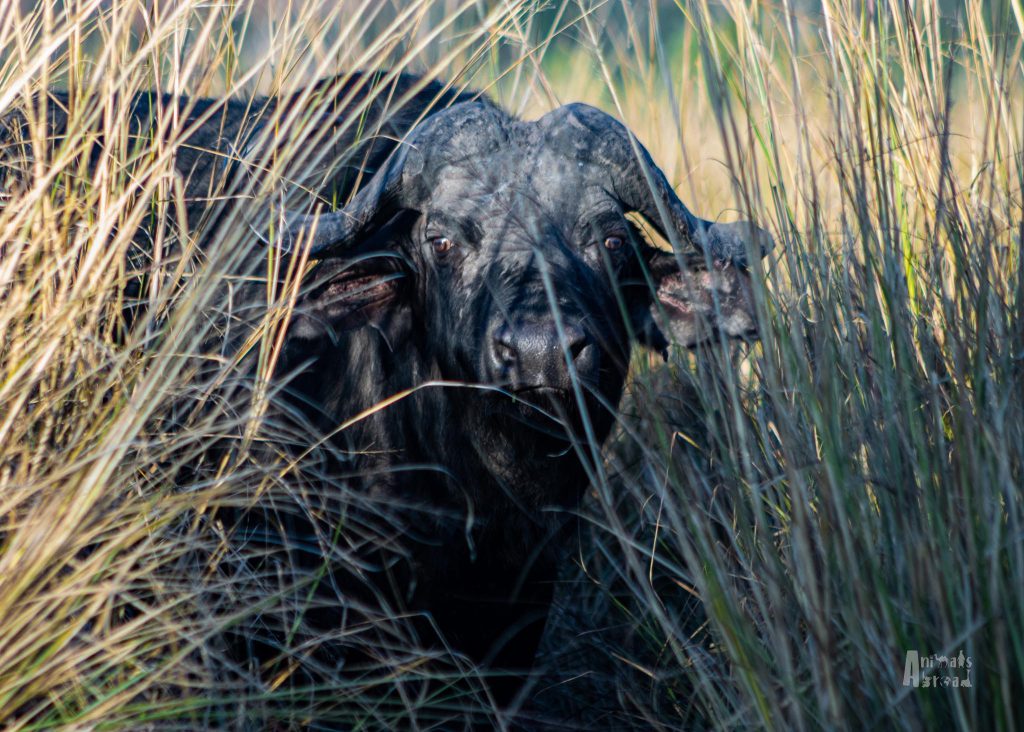 Herds of Cape buffalo gathered silently at the river’s edge, keeping watch of their surroundings.