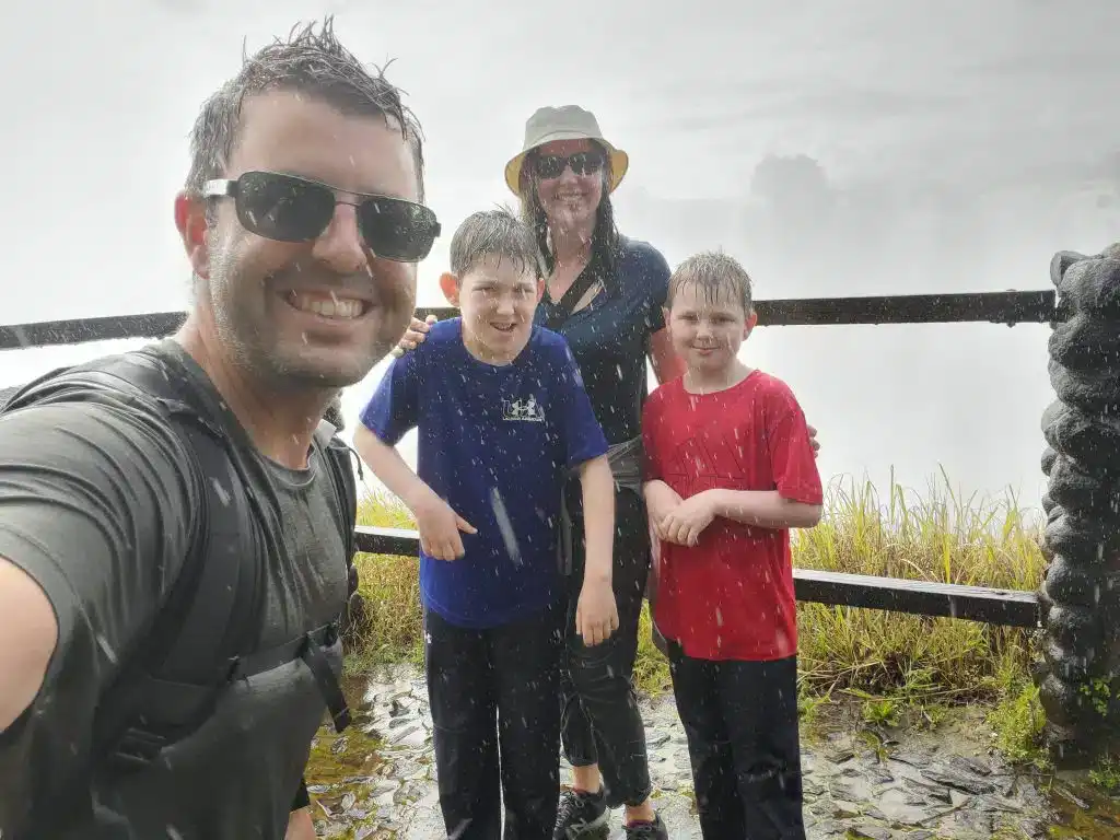 And that mist? It’s no exaggeration. One minute you’re in full sun, the next you’re caught in a downpour, soaked to your socks and underwear in seconds. Crossing the footbridge felt like walking through a cloudburst. But getting drenched is all part of the fun. We embraced it, laughing and running through the mist like kids in a sprinkler.