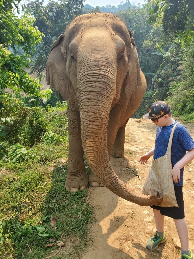 There’s something unforgettable about walking alongside an elephant as its trunk reaches toward you. In the hills north of Chiang Mai, our family was invited into the world of these gentle giants, and the experience felt both humbling and magical.