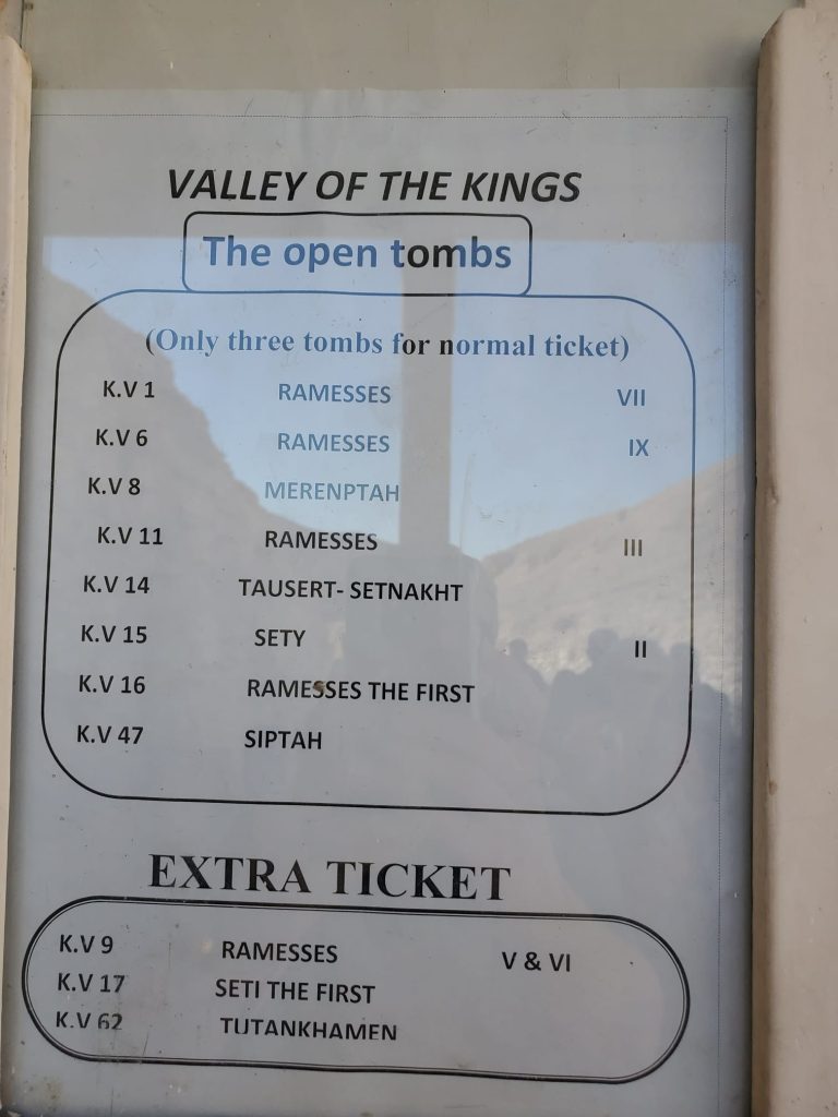 When you arrive at the Visitor Centre, you’ll find a sign showing which tombs are open that day.